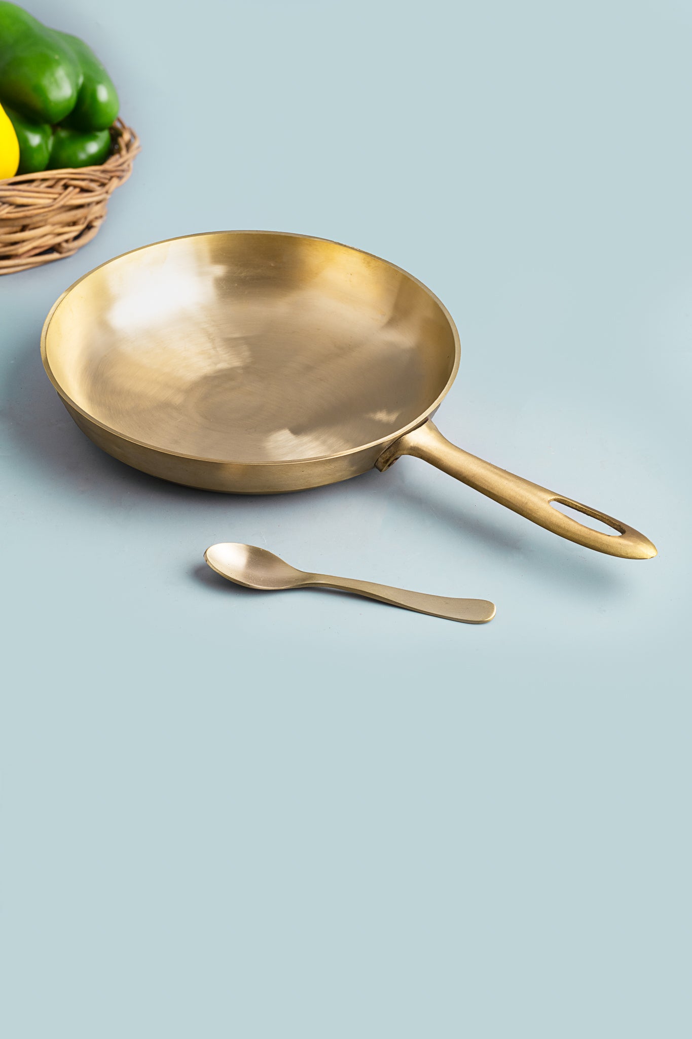 The Bronze/Kansa Sauté /Fry Pan from 80's Cookware - a must-have addition to your kitchen. This meticulously crafted pan offers exceptional performance and durability for all your sautéing needs.