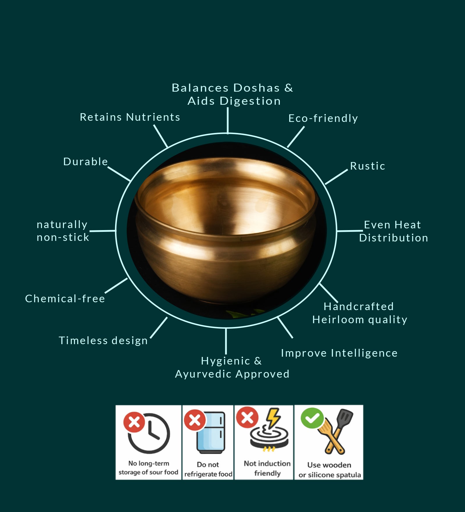 Crafted from Premium Bronze, 80's Cookware's Bronze Pana is your ideal companion for preparing gravies, avial, greens, sweets, ragi mudde, and more. The unique properties of bronze ensure even heat distribution, allowing your dishes to cook uniformly while preserving their exquisite flavors.