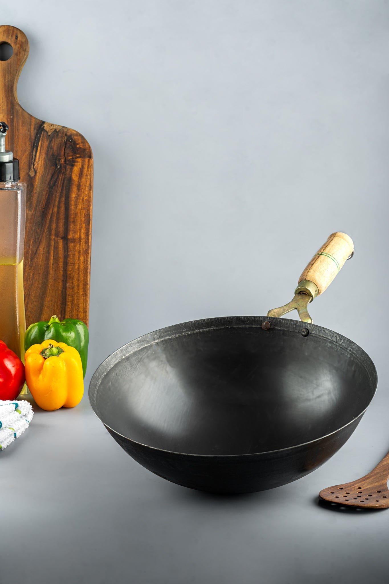 The Pure Iron Wok by 80's Cookware is your go-to kitchen companion for mastering the art of stir-frying. Its gracefully curved sides are designed to excel at stir-frying a variety of foods, be it rice, vegetables, or noodles. The addition of a wooden handle ensures that you can expertly toss and flip your dishes in a flash, making it a versatile cooking tool.