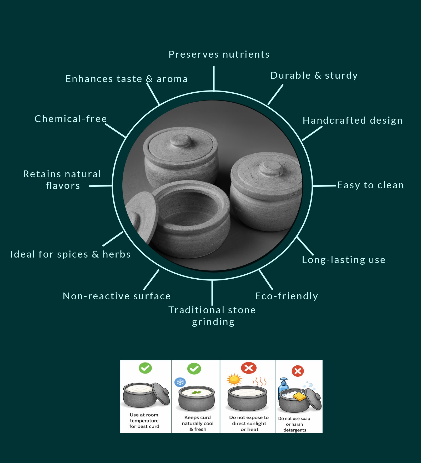 Soapstone, known for retaining heat for extended periods, behaves much like a casserole, keeping your food warm and ready to serve. These traditional maakal containers, a true culinary gem, are especially celebrated for effortlessly producing the tastiest and thickest curd, with the advantage of soapstone's heat-retaining properties, ensuring curd sets within 4-5 hours.